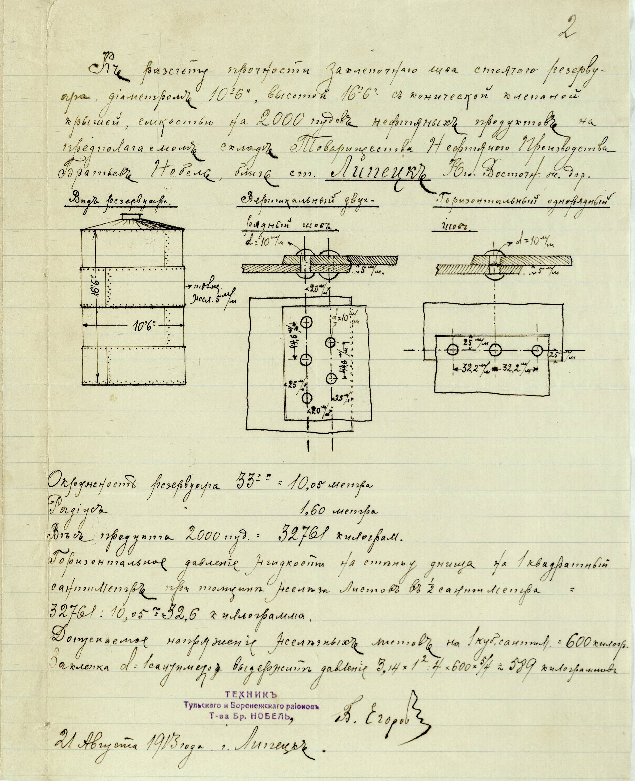 ❒ Разрешающие документы и расчеты для склада в г. Липецке (Тамбовская губ.)