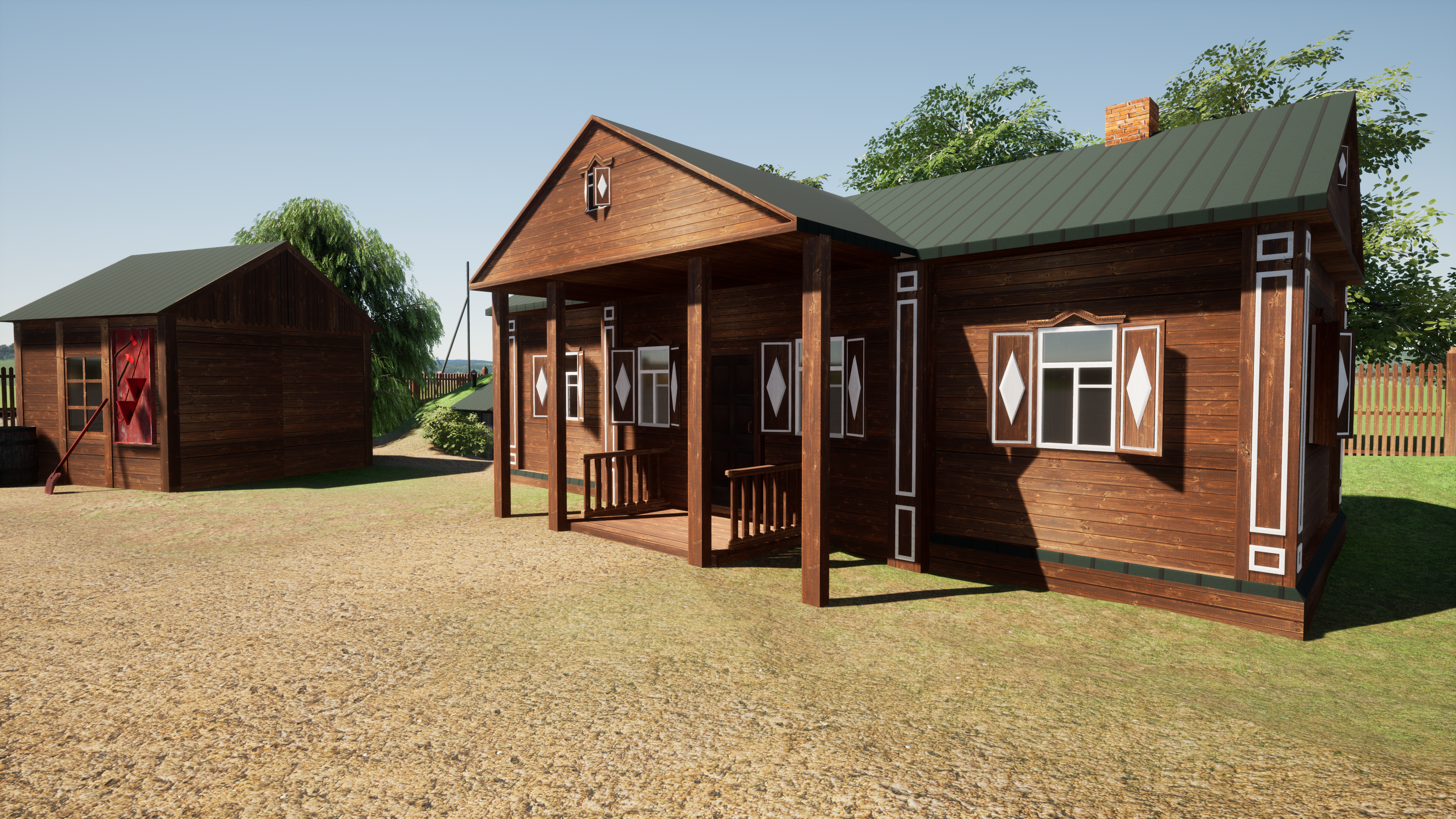 Жилой дом, ретирадная, навес для бочек