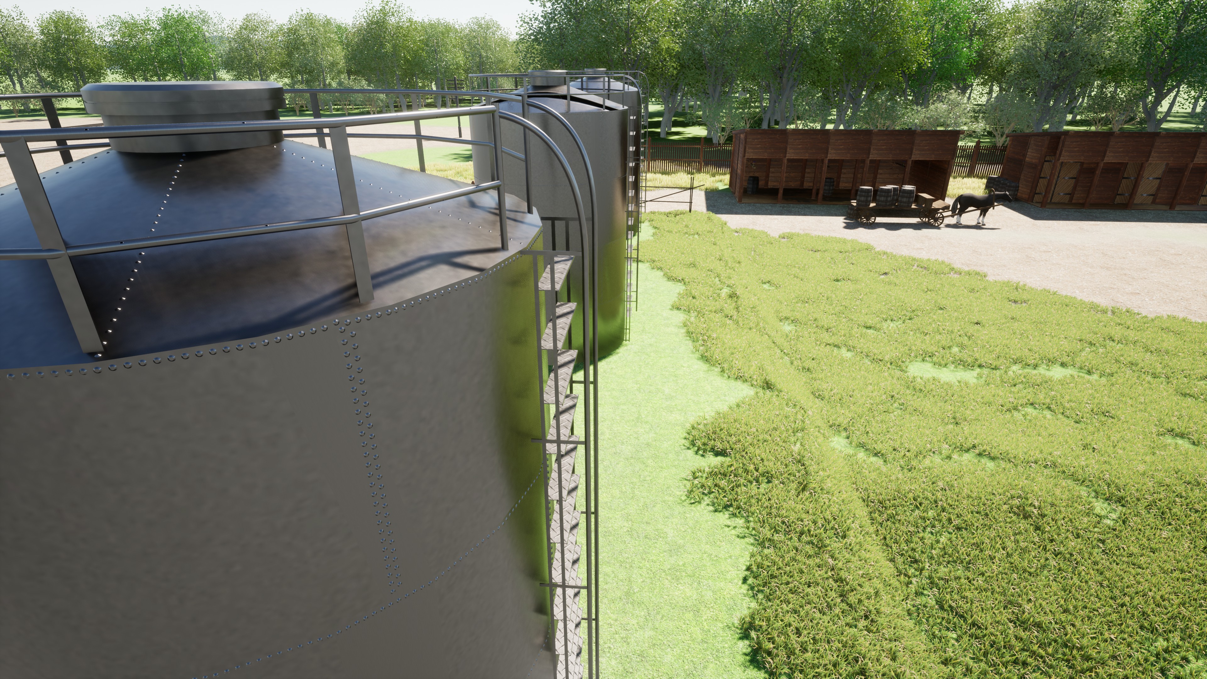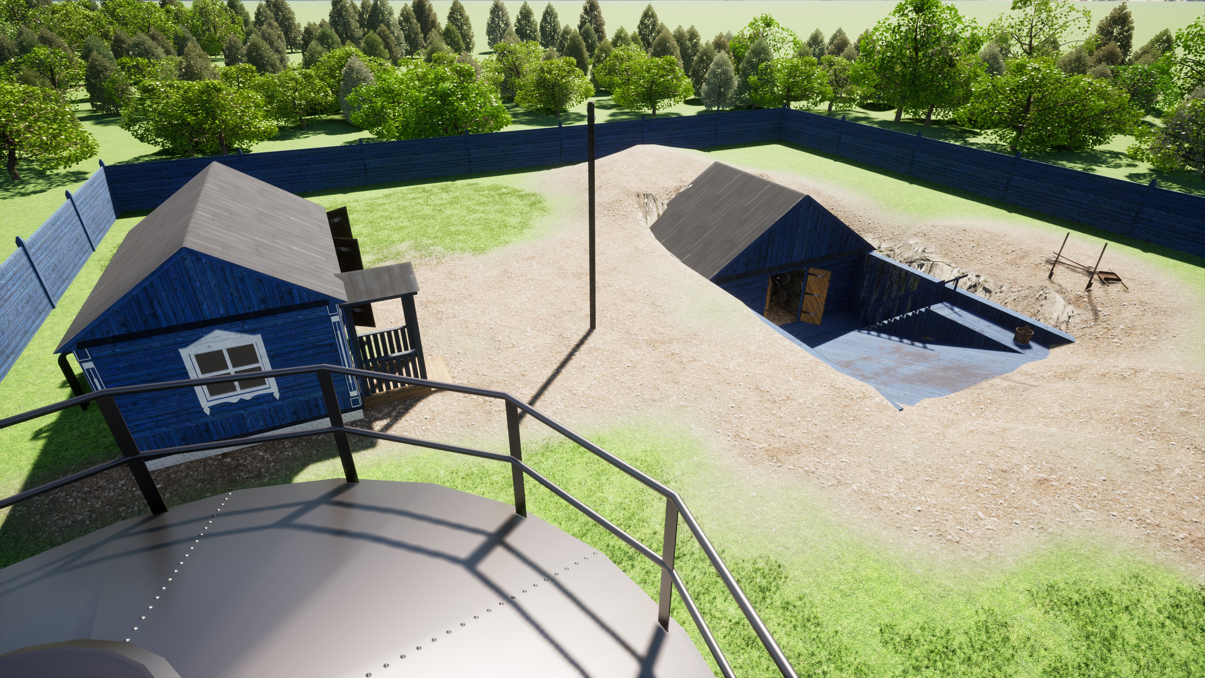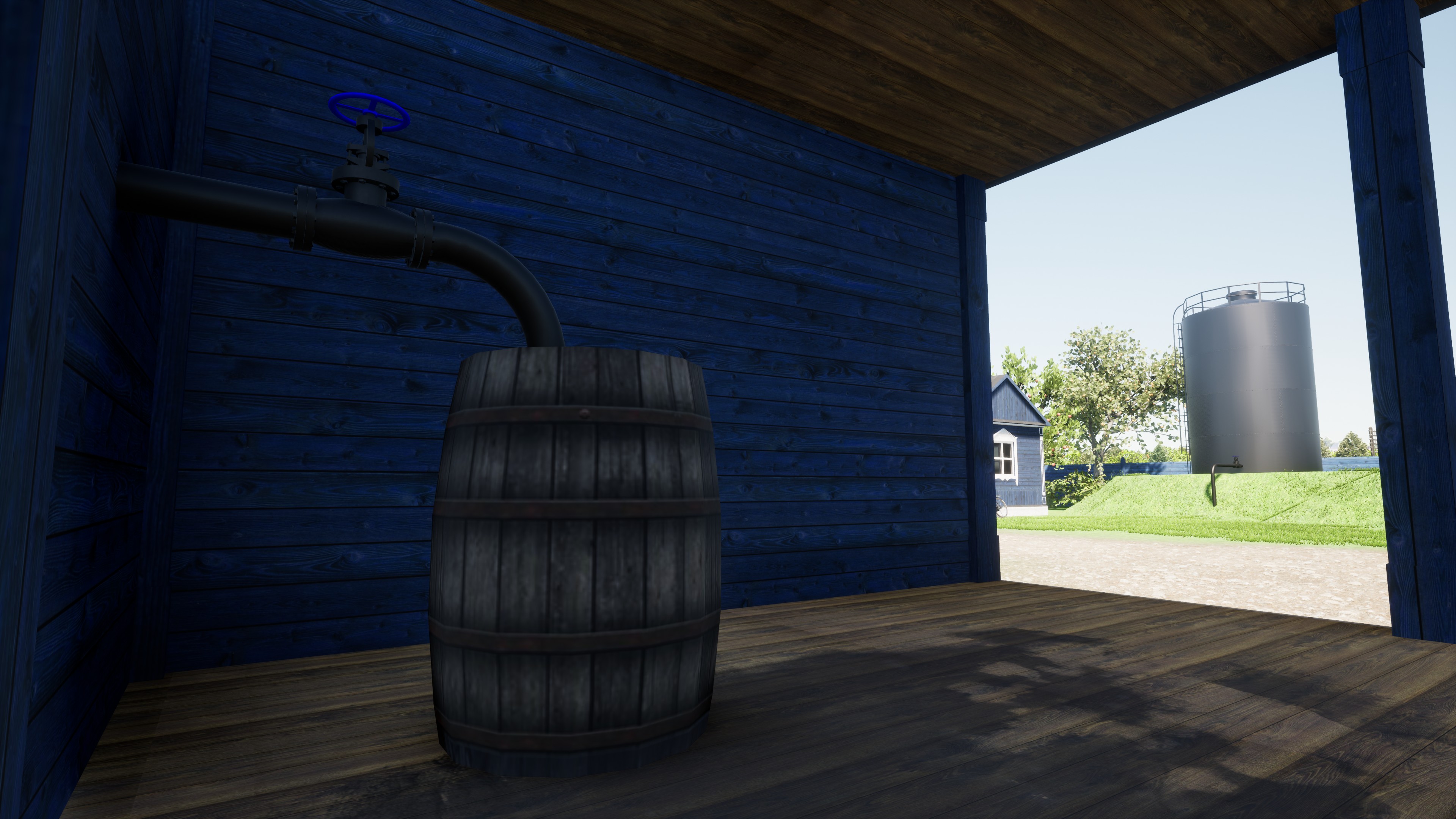 Навес для бочек, бак, насосы